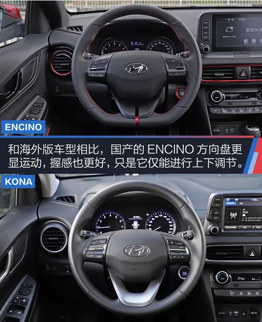 北京現(xiàn)代ENCINO的外觀讓人驚艷,簡潔設計的內(nèi)飾也沒有太多復雜的線條元素或者造型,新車僅通過雙色裝飾來調(diào)節(jié)車內(nèi)氛圍。相對于海外版車型,國產(chǎn)的ENCINO更將該車的性能外顯,運動型方向盤就是最好的窗口。