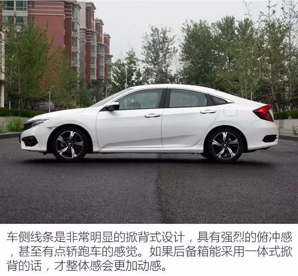 十代思域的外觀足矣為你帶來(lái)回頭率,這個(gè)待遇可不是一臺(tái)家庭A級(jí)車可以帶來(lái)的??萍几惺愕那澳?,時(shí)髦的掀背造型,甚至是尾燈的括號(hào),都讓思域的外觀有些夢(mèng)想走進(jìn)現(xiàn)實(shí)的感覺(jué)。輪轂的造型也是本田一直非常擅長(zhǎng)的,不僅營(yíng)造出運(yùn)動(dòng)的氣息,豪華感也油然而生。
