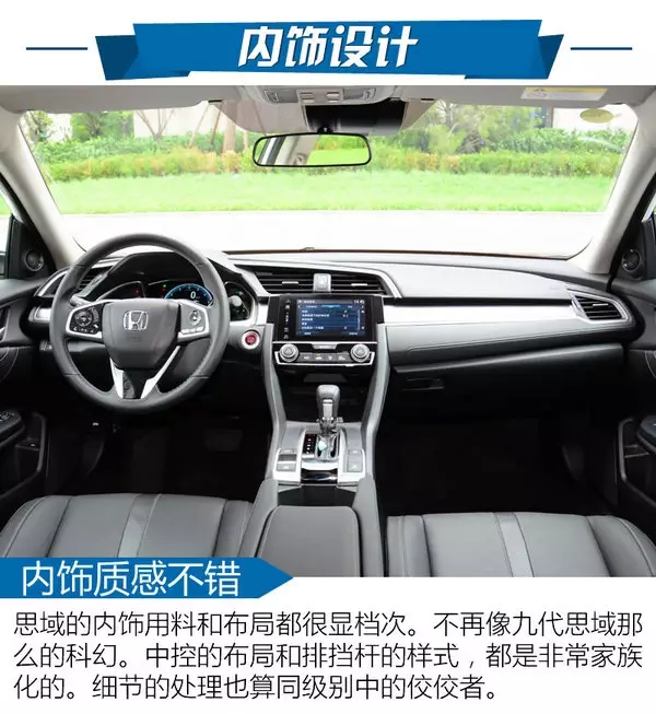思域的內(nèi)飾沒(méi)有低級(jí)到之堆砌一些看起來(lái)很高檔的廉價(jià)飾板和飾條。即使摸起來(lái)還是該級(jí)別該有的較硬手感,但是可以看出是經(jīng)過(guò)精心設(shè)計(jì)的。同時(shí),本田大法中最著名的就是收納空間的水平。十代思域依舊領(lǐng)先同級(jí)對(duì)手一個(gè)檔次。你可以說(shuō)它的內(nèi)飾是看起來(lái)不錯(cuò),用起來(lái)非常好的一位。