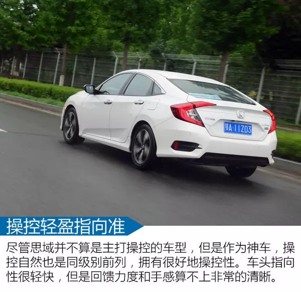 本田車型在家用車的領(lǐng)域一直都不會(huì)太突出操控性。事實(shí)上那些帶R的家伙也并不以駕駛樂(lè)趣為己任。但是,看似不運(yùn)動(dòng)的調(diào)均卻可以給人帶來(lái)更好的駕駛感受。尤其是靈巧感,非常的好上手。我想這是本田設(shè)計(jì)師希望在家用車上帶給大家的駕駛感受。畢竟,這個(gè)級(jí)別談操控有些不合時(shí)宜。不如做的順手一些,再把舒適做到剛剛好的地步。兩者兼顧一直是本田車型做的很好地一點(diǎn)。