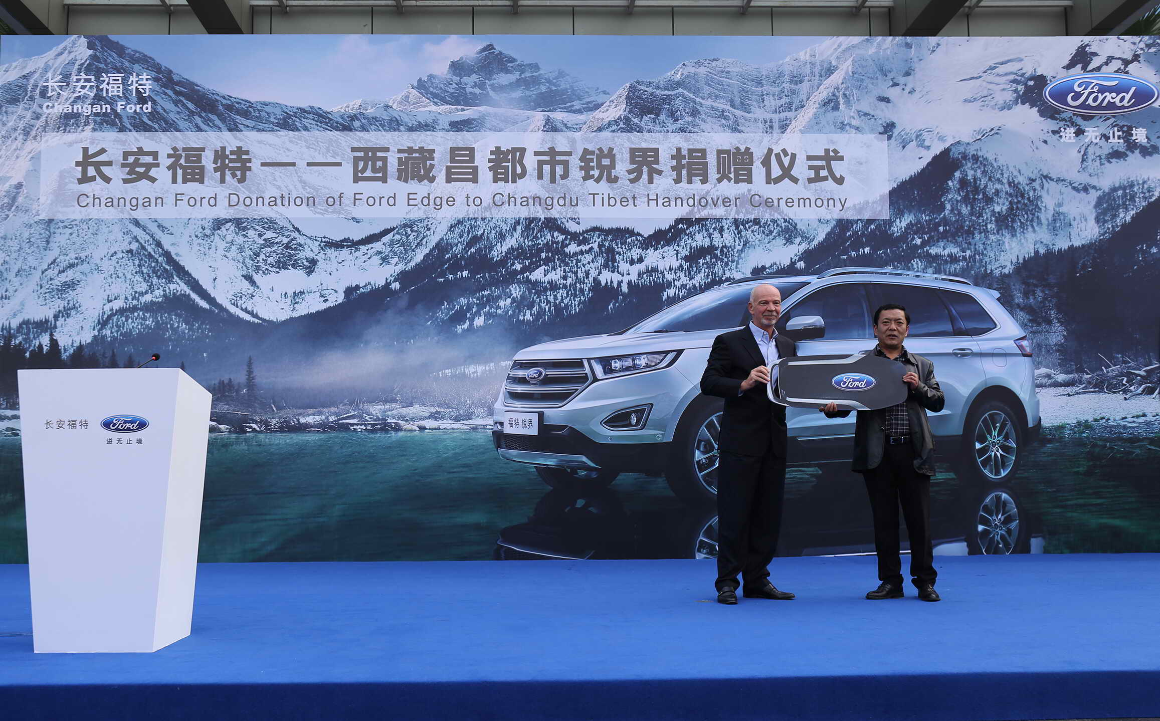 為支持民族地區(qū)建設,助力重慶對口支援地區(qū)西藏自治區(qū)昌都市的發(fā)展,今日,長安福特汽車有限公司向昌都市受捐辦、昌都市工業(yè)和信息化局捐贈兩臺2016款福特銳界EcoBoost? 330 V6四驅旗艦型車型(以下簡稱福特銳界V6旗艦型)。重慶市經濟信息化委員會副巡視員白亞雄、西藏昌都市發(fā)改委副處長吳江華、西藏昌都市工信局副局長閆壘、長安福特汽車有限公司總裁何駿杰、長安福特汽車有限公司人力資源及行政副總裁劉忠勝等,共同出席了在長安福特重慶一工廠舉行的交車儀式。