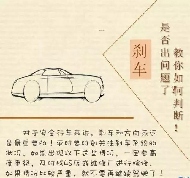 如何判斷剎車是否出現(xiàn)問(wèn)題是駕駛員必備技能, 因?yàn)閷?duì)于安全行車來(lái)講,剎車和方向永遠(yuǎn)是最重要的!平時(shí)要時(shí)刻關(guān)注剎車系統(tǒng)的狀況,如果出現(xiàn)以下這些情況,一定要高度重視,及時(shí)找4S店進(jìn)行檢修,如果情況比較嚴(yán)重,就不要再繼續(xù)駕駛了!